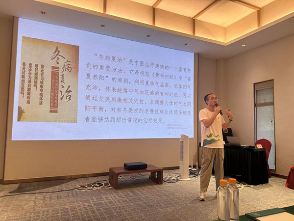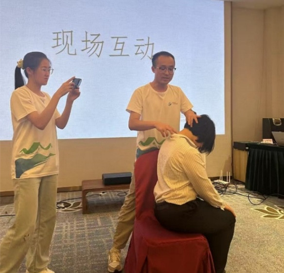 培训活动中,广州华夏职业学院中医康复技术许鹏老师向学员详细讲解了艾灸的原理、作用及适用病症,如“冬病夏治”理念、温经散寒、扶阳固本等功效,并现场演示了大椎、足三里、合谷等养生保健穴位的艾灸方法。此外,许鹏老师还强调了施灸禁忌与安全注意事项,确保学员在掌握艾灸专业知识的同时,了解不同体质和疾病对艾灸的反应。